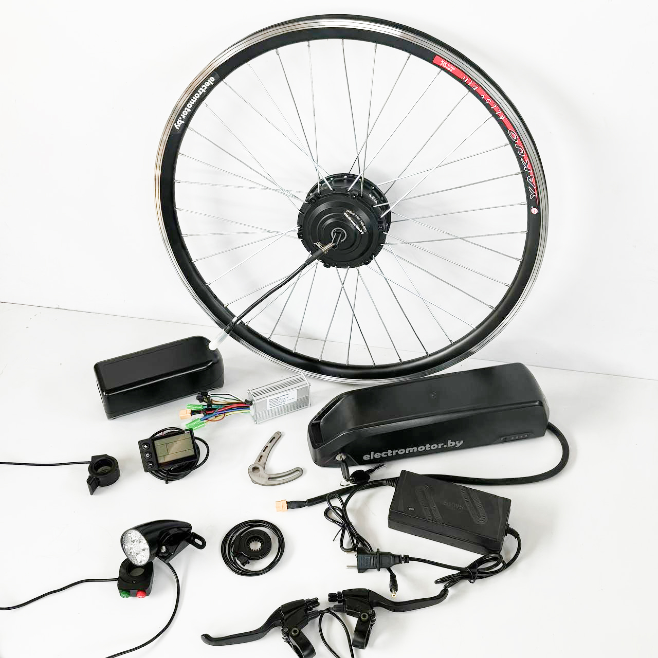 Доступный и простой в установке комплект электровелосипеда «Стриж» Набор содержит все необходимые компоненты для переделки обычного велосипеда в электровелосипед, включая аккумуляторную батарею и зарядное устройство.