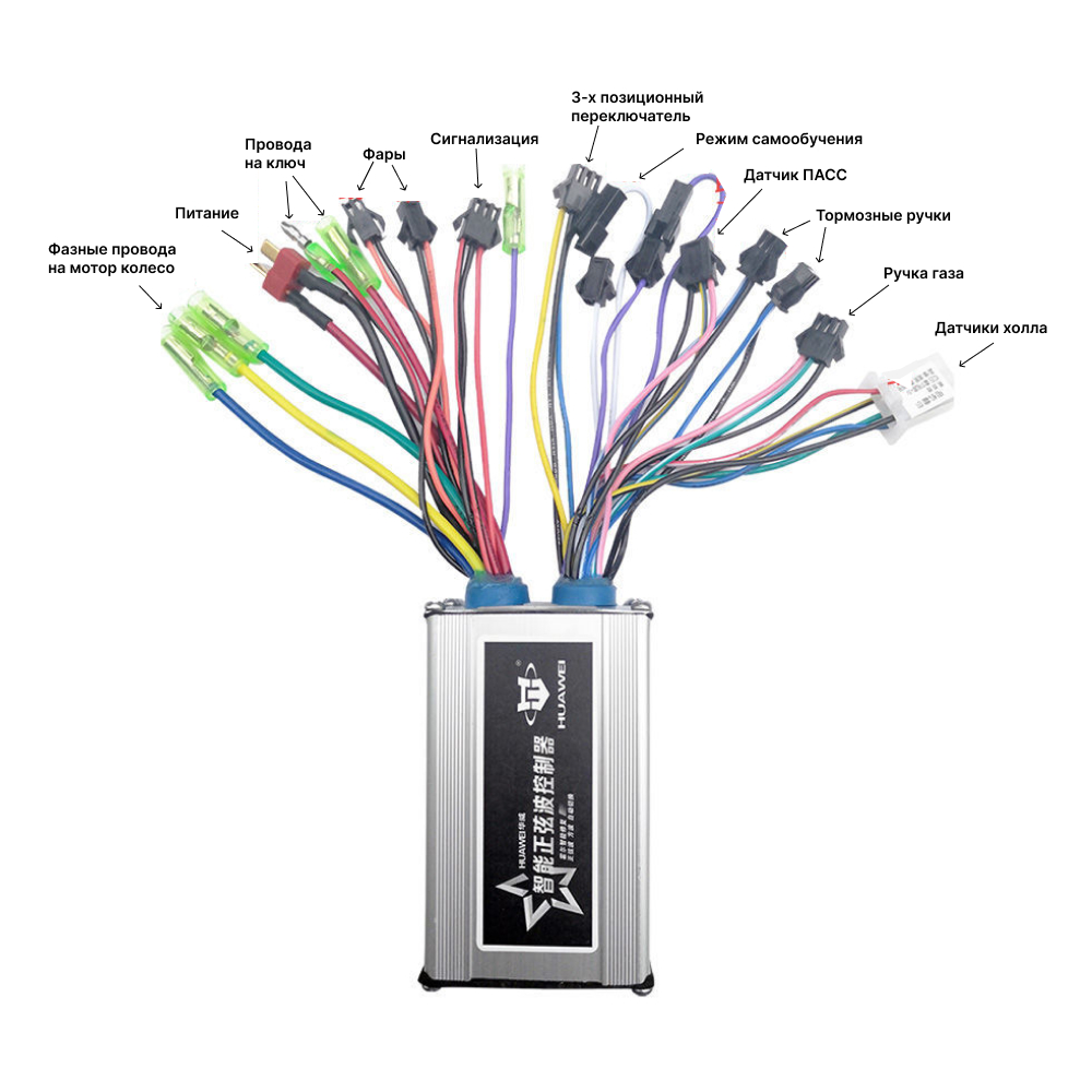 - Есть выход на спидометр, на контактные ручки тормозов, а также на 3х позиционный переключатель режимов скорости мотора.